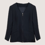 Chaqueta para mujer en rayón con cierre frontal, bolsillos, escote redondo